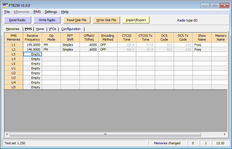 To add a new lower/upper pair, click in the lower frequency cell of the desired memory pair and enter the frequency. Now do the same for the upper frequency.